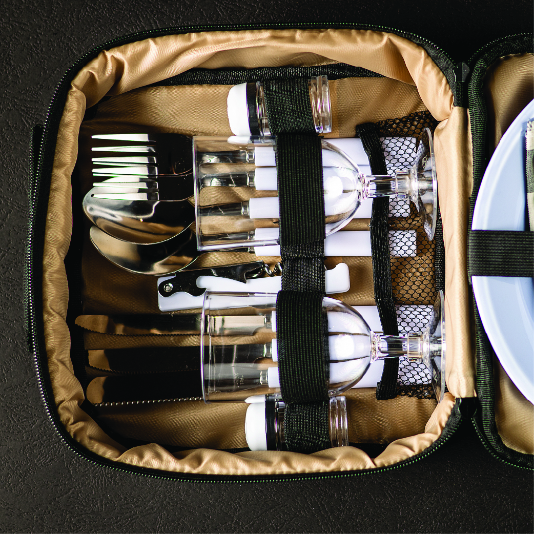 کیف کمپ و پیک نیک 2 نفره، با جنس ضد حرارتی نگهدارنده گرم و سرد تا 8 ساعت، شامل ست غذاخوری کامل